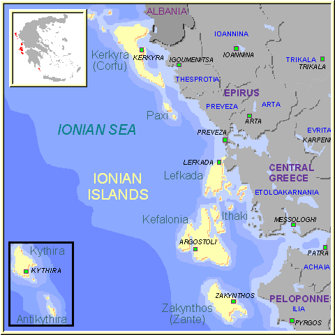 Corfu (known as Kerkyra to the Greeks) is one of the seven mountainous Ionian Islands which are more reminiscent of Italy than the barren Aegean Islands. The origin of the name Ionian is obscure but thought to derive from the goddess Io, one of Zeus’s consorts. According to Homer it was important during Mycenaean times. In Homer’s Odyssey, Odysseus is washed ashore with the help of Athena and awakens to the laughter of princess Nausica and her friends. He was taken to the Phaecian Palace and after revealing his identity to King Alcinous he is given a ship to take him safely home to Ithaca. During the return trip the Phaecian ship is turned to stone by Poseidon who was angry at them for helping Odysseus. By the 8th century BC the Ionian Islands were under the control of the powerful Greek city of Corinth. Corfu (known as Corcyra in ancient times) had a powerful navy, freed itself from the Corinthians, and became an allied of Athens in the Peloponnesian War (431-404 BC.). As things turned out, Corfu picked the wrong side and suffered as a result. In 229 BC the Romans took control (of all the Ionian Islands) and used it as an important naval base. Nero, Julius Caesar, Vespasian and Cicero all visited the island and many wealthy Romans had estates there. Roman rule lasted from 229 BC to 395AD and there are still Roman ruins to be seen on the island.