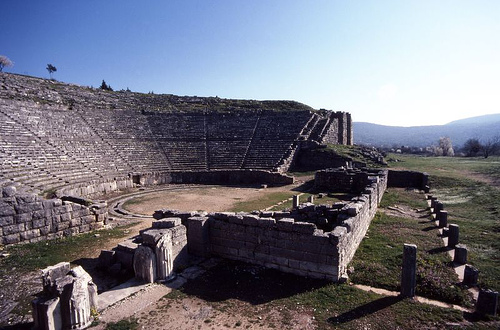 The answer was the priest’s interpretation of the noise made by the leaves on the oak tree and the sounds from the cauldrons when struck by the priest. The sacred tree was uprooted by the Emperor Theodosius in AD 393.The main feature of the site today is the 3rd century BC theatre which was excavated in 1959.