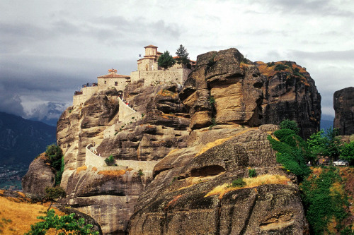 In the words of UNESCO, "The net in which intrepid pilgrims were hoisted up vertically alongside the 373-meter cliff where the Varlaam monastery dominates the valley symbolizes the fragility of a traditional way of life that is threatened with extinction." In the 1920's, steps were cut into the rock, making the complex accessible via a bridge from the nearby plateau. During World War II the site was bombed and many art treasures were stolen. Only six of the monasteries remain today.