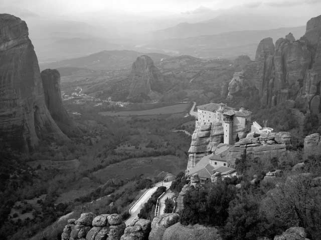 Although more than 20 monasteries were built, beginning in the 14th century, only six remain today. These six are: 'Great Meteoron (or Transfiguration), Varlaam, St. Stephen, Holy Trinity, St. Nicholas Anapausas and Rousanou. There is a common belief that St. Athanasios (founder of the first monastery) did not scale the rock, but was carried there by an eagle. Access to the monasteries was originally extremely difficult, requiring either long ladders lashed together or large nets used to haul up both goods and people.