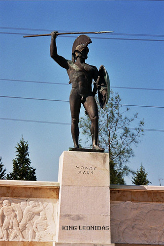 In the Battle of Thermopylae, which occurred in August 19, 480 BC (described in detailed by the ancient historian Herodotus), an alliance of Greek city-states fought the invading Persian Empire at the pass of Thermopylae in central Greece. Vastly outnumbered, the Greeks held back the Persians for three days in one of history's most famous battles. A small force led by King Leonidas I of Sparta blocked the only road (possibly only about 14 ft wide at the time) through which the massive army of Xerxes I of Persia could pass.