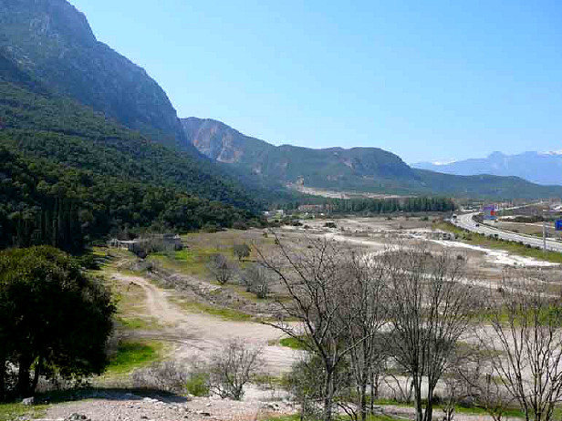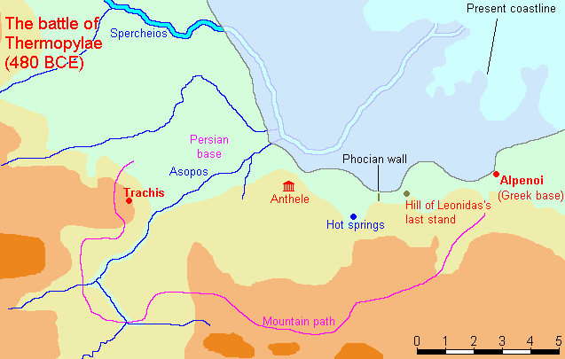 In the time of Leonidas I (5th century BC) , King of Sparta, the pass was a narrow track (probably about 14 yards wide) under the cliff. In modern times the deposits of the Spercheius have widened it to a breadth of 1 to 3 miles broad to the foot of the hill.