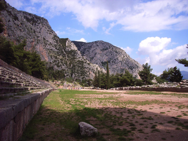 The Pythian Games held at Delphi were one of four Pan-Hellenic games held in ancient Greece that attracted competitors from all over the Greek world. Founded in the 6th century BC in honor of Apollo, they originally centered on the talents the god exemplified - music and poetry. Soon however, athletic competitions were added, the best known being a great chariot race, held in the stadium that can still be seen at Delphi. The winners of the Pythian Games received a laurel wreath from the city of Tempe in Thessaly, where Apollo was said to have picked a laurel on his way to Delphi. The ruins of the stadium which seated 7000 people can still be visited today.