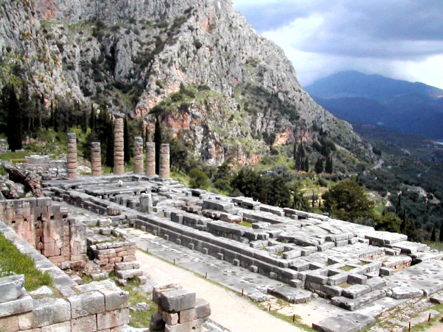 The Temple of Apollo seen today at Delphi dates from the 4th century BC.: