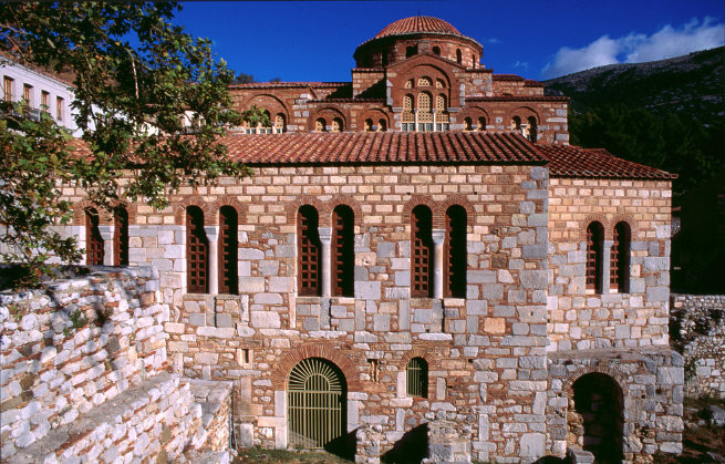 The church of the Theotokos, the oldest in the complex, is the only church known to have been built in mainland Greece in the tenth century. The Church of the Theotokos adjoins a larger cathedral church, or the Katholikon, tentatively dated to 1011-12.