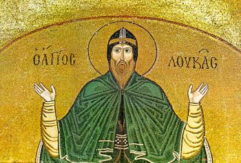 Hosios Loukas is the largest of three monasteries surviving from the Middle Byzantine period in Greece. It differs from Daphnion and Nea Moni in that it is dedicated to a single saint. St. Lukas's prophecy about the reconquest of Crete is commemorated by the image of Joshua on the exterior wall of the Panagia church: Joshua was considered a model "warrior of the faith", who’s help was especially effective in the wars waged against the Arabs.